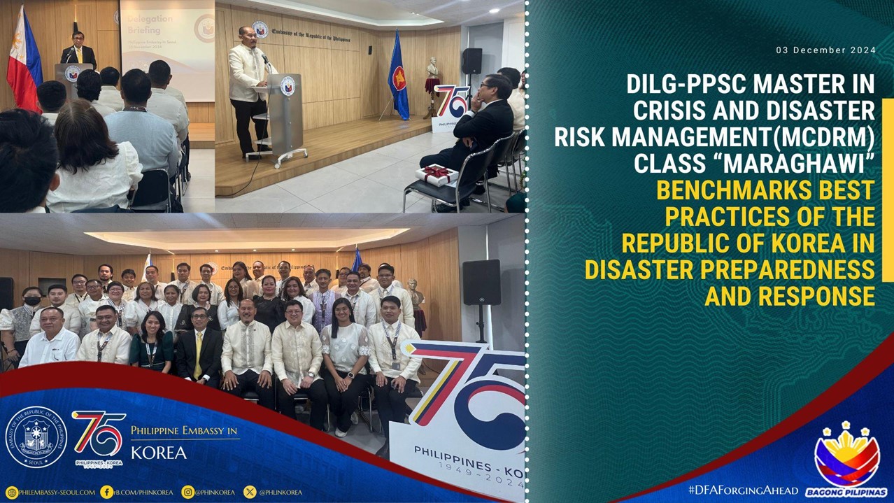 DILG-PPSC MASTER IN CRISIS AND DISASTER RISK MANAGEMENT (MCDRM) CLASS “MARAGHAWI” BENCHMARKS BEST PRACTICES OF THE REPUBLIC OF KOREA IN DISASTER PREPAREDNESS AND RESPONSE