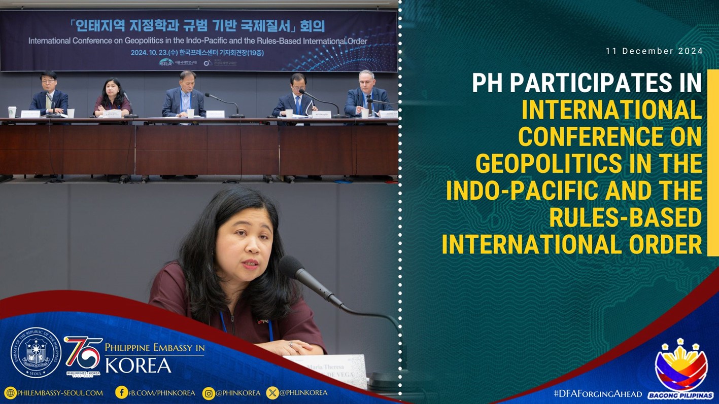 11 December 2024, Seoul. Panelists from the Philippines took part in the International Conference on Geopolitics in the Indo-Pacific and the Rules-Based International Order held on 23 October 2024 at the Korea Press Center in Seoul.