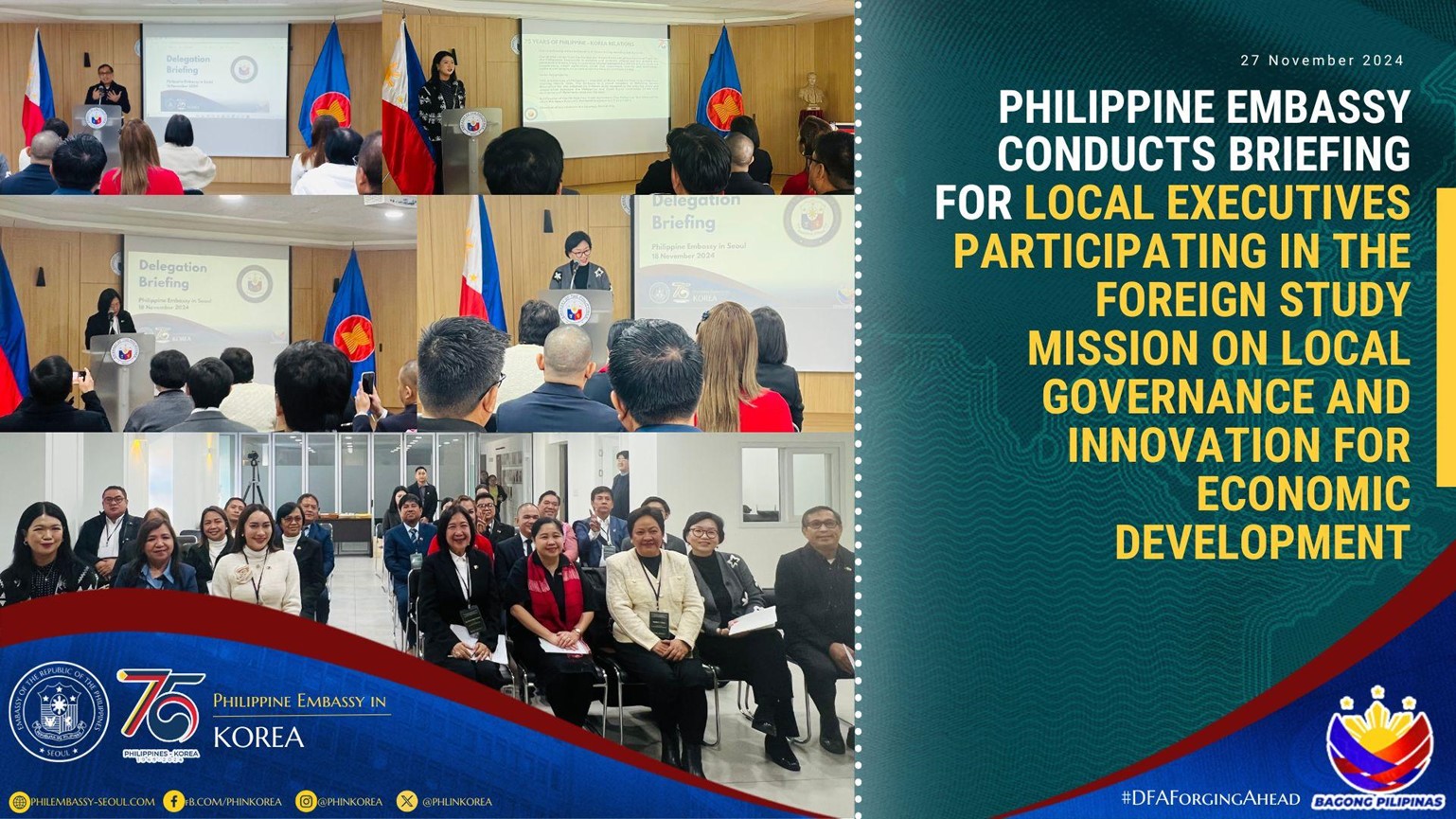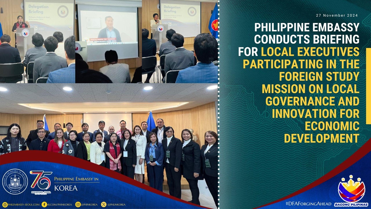PHILIPPINE EMBASSY CONDUCTS BRIEFING FOR LOCAL EXECUTIVES PARTICIPATING IN THE FOREIGN STUDY MISSION ON LOCAL GOVERNANCE AND INNOVATION FOR ECONOMIC DEVELOPMENT