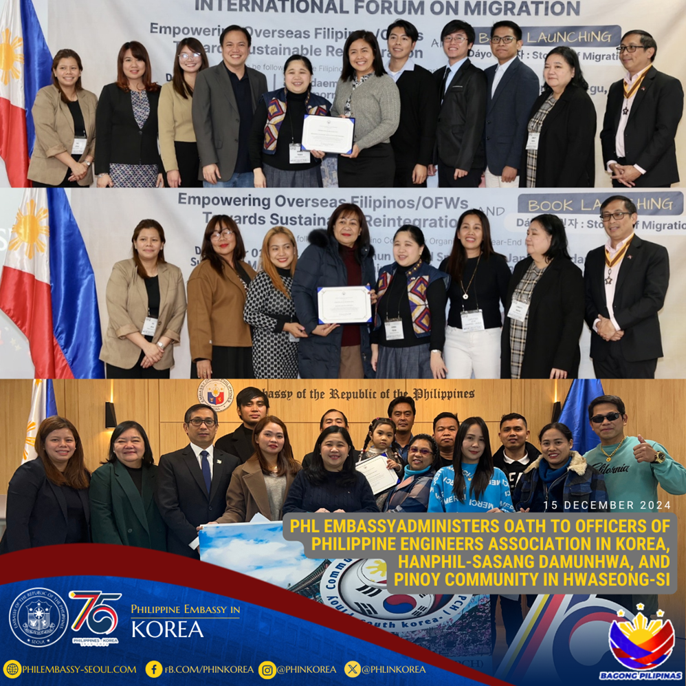 PHL EMBASSY ADMINISTERS OATH TO OFFICERS OF PHILIPPINE ENGINEERS ASSOCIATION IN KOREA, HANPHIL-SASANG DAMUNHWA, AND PINOY COMMUNITY IN HWASEONG-SI