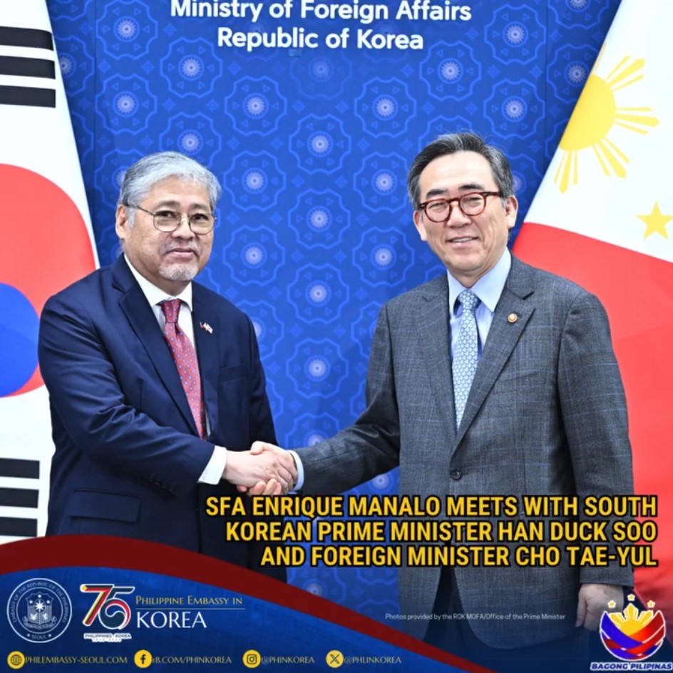 SFA ENRIQUE MANALO MEETS WITH SOUTH KOREAN PRIME MINISTER HAN DUCK SOO AND FOREIGN MINISTER CHO TAE-YUL